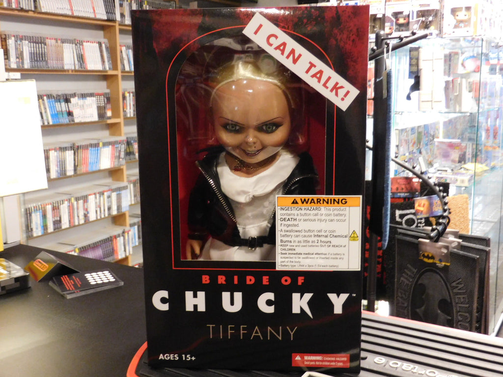 Just as verbose as she was in Bride Of Chucky, Tiffany has lots to say. She speaks six phrases direct from the film, activated by a discrete button on her back. Tiffany also features realistic glass-like eyes and nine points of articulation.